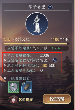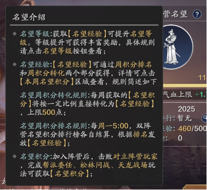Vậy làm thế nào để nhận được điểm danh vọng? Sau khi gia nhập bang phái, đánh bại người chơi của phe đối địch, hoặc hoàn thành cuộc trận bang chiến, trận chiến rừng thông, chiến trường Thiên Long, bạn có thể nhận được điểm danh vọng; điểm danh vọng nhận được hàng tuần sẽ được quy đổi thành kinh nghiệm danh vọng theo tỷ lệ nhất định, tối đa 500 điểm; Kinh nghiệm danh vọng nhận được từ hai phần: xếp hạng điểm hàng tuần và quy đổi điểm hàng tuần. Kinh nghiệm danh vọng thu được có thể cải thiện mức độ danh vọng của phe ta và nhận được phần thưởng tương ứng.