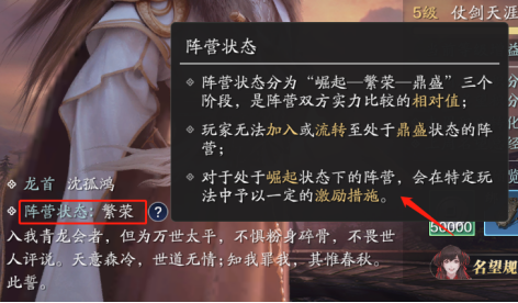 Trạng thái bang hội được chia thành ba trạng thái: trỗi dậy, thịnh vượng và hoàng kim, bang ở trạng thái tăng có thể nhận được các biện pháp khuyến khích do hệ thống đưa ra;