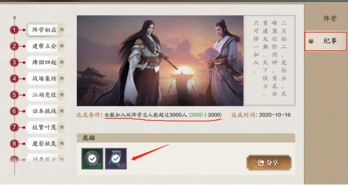 Trong lối chơi Liên minh chiến, nó có thể được gọi là thành tích phe theo một cách khác. Nó ghi lại các nhiệm vụ đã hoàn thành cùng nhau giữa các bang phái khác nhau và đưa ra một số điểm ràng buộc nhất định và các vật phẩm khác làm phần thưởng. Một số nhiệm vụ được ghi lại trong hệ thống biên niên sử này đòi hỏi sự nỗ lực chung của tất cả mọi người trong máy chủ nơi bạn đặt, vì vậy, bạn có thể nhận được nhiều phần thưởng, mọi người đều có thể làm hết sức mình ~