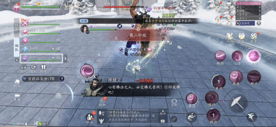 Trong giai đoạn chuyển đổi giai đoạn thứ hai, Boss sẽ sử dụng cột trụ đập xuống đất và táp trụ quay vòng , từ đó gây sát thương vừa phải lên tất cả các mục tiêu xung quanh . Tổng cộng có ba giai đoạn. Sau khi kết thúc, Thiên hương cần bổ sung máu kịp thời cho đồng đội.